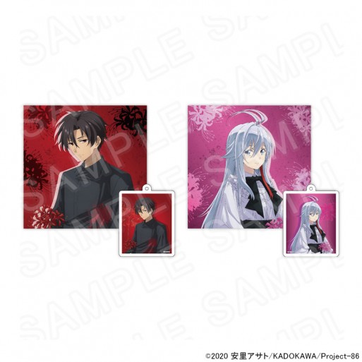 These colorful hand towel and keychain sets feature Shin and Lena against spider lily designs.